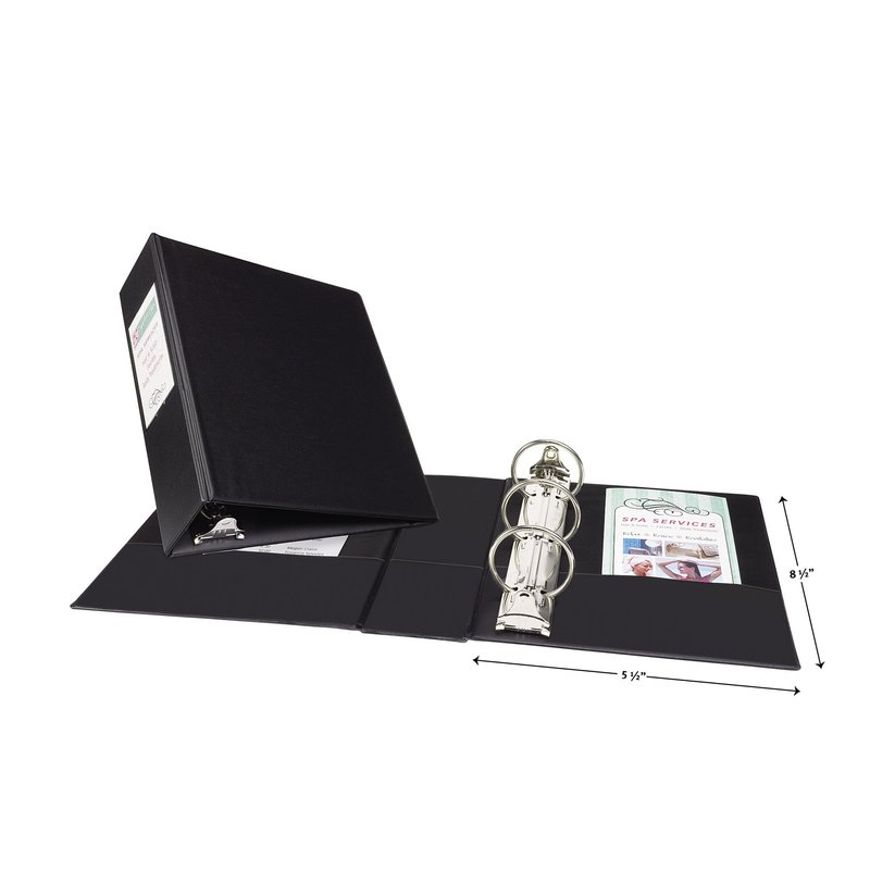 Avery Mini Durable 3 Ring Binder, 2" Round Rings, Holds 5.5" x 8.5" Paper, Label Holder, 1 Black Binder (27554)