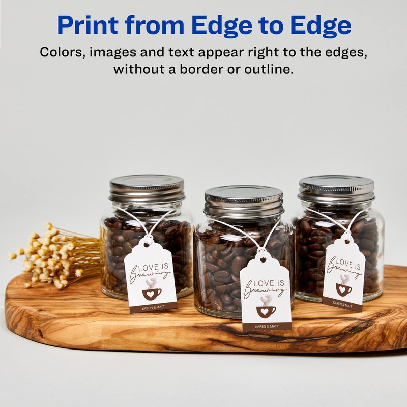 - Print professional looking custom tags with double-sided full bleed backgrounds using our print-to-the-edge feature that allows you to print to the edge without a border or outline