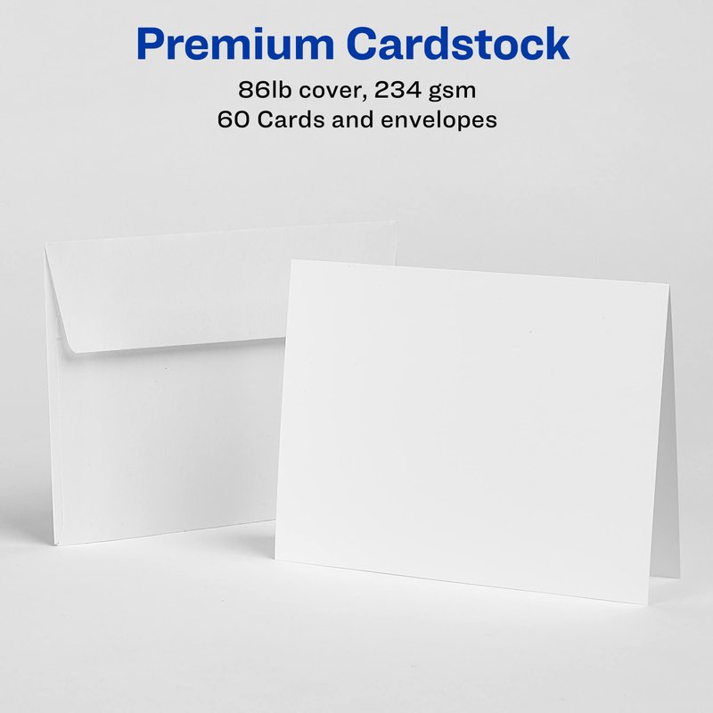 Avery Printable Note Cards with Envelopes, 4.25" x 5.5", Matte White, 60 Blank Note Cards for Inkjet Printers (08315)