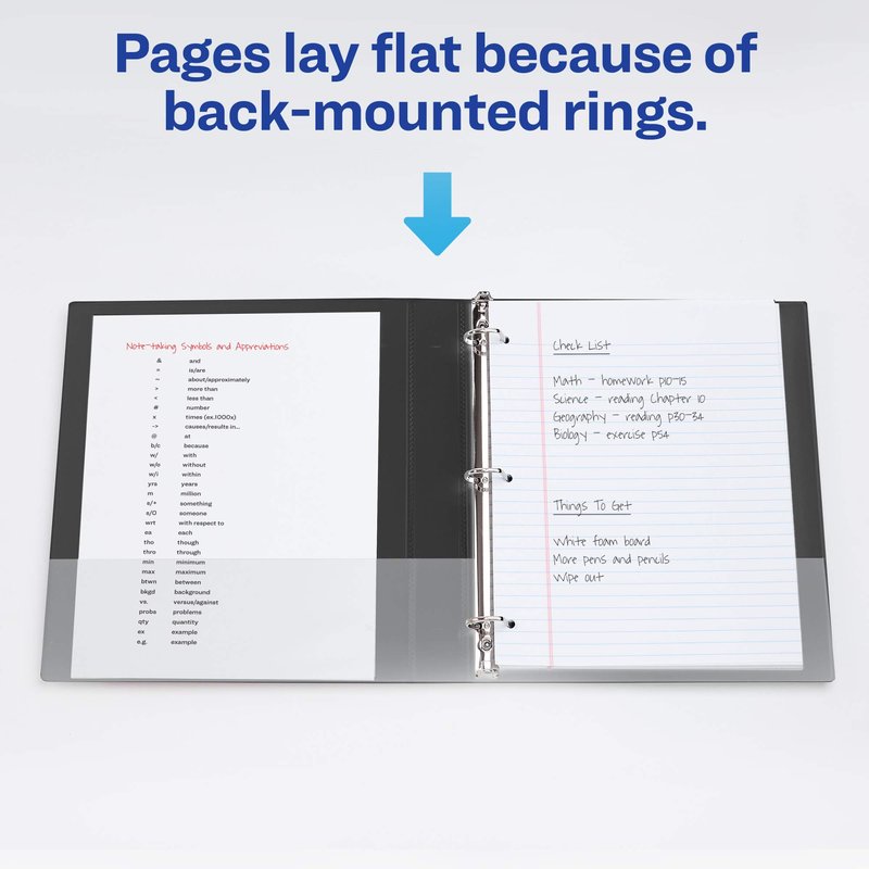 - Important documents and presentation materials stay flat like they're supposed to because slant rings are mounted on the rear binder panel instead of on the spine