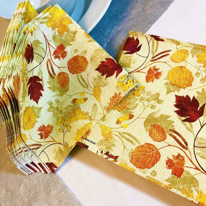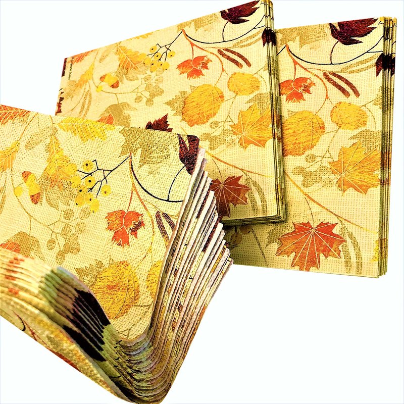 - Great for friends get together and afternoon tea snacks in the Fall, casual and formal party settings. Every piece of these decorative paper napkins breathes nature’s beauty with a simple touch of grace and elegance.