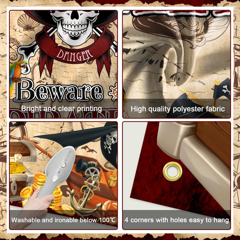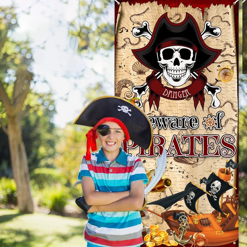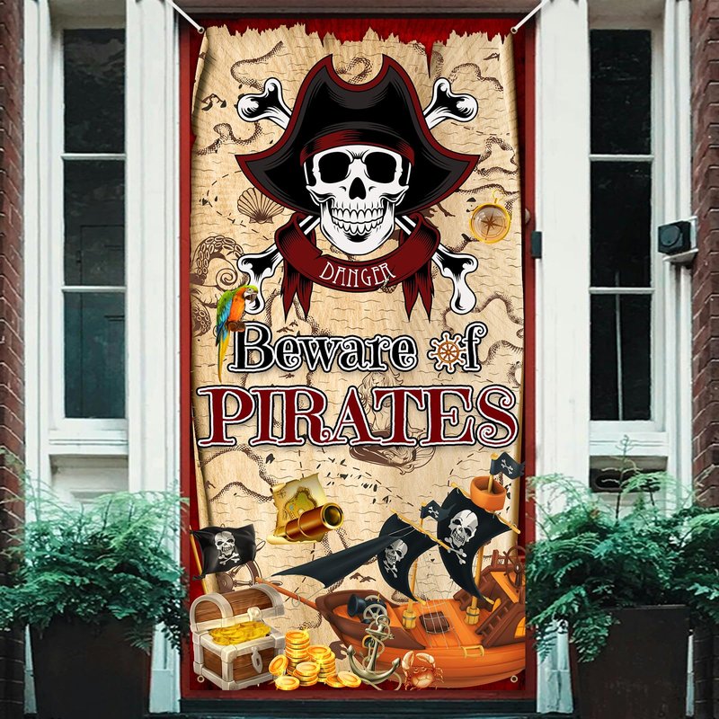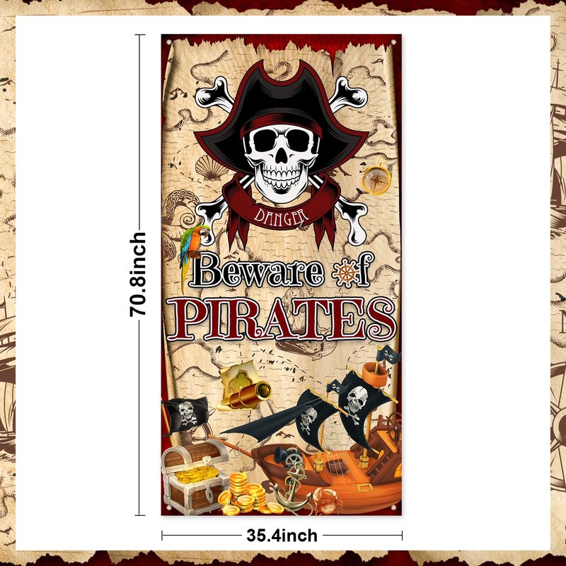 - Pirate Birthday Party Supplies: This beware of pirates door cover is perfect for pirate party, Halloween pirate costume party decorations; Also applied in occasions like family gathering, home decor; Hang them on front door, entrance of your kids birthday party, fireplace, garden wherever you like to decorate