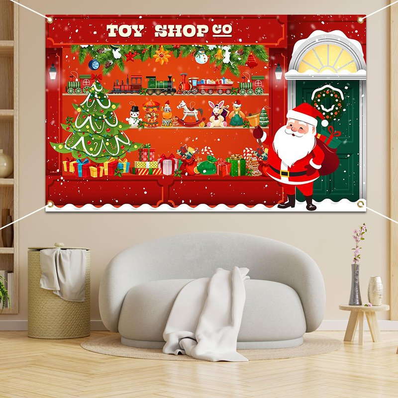 - Applicable Occasions: This eye-catching christmas toy store banner is suitable as kids christmas theme party decoration, holiday party welcome door banner, or as a house, wall, bar background decoration.