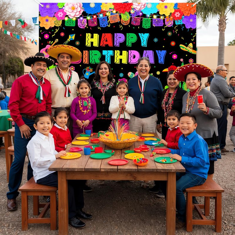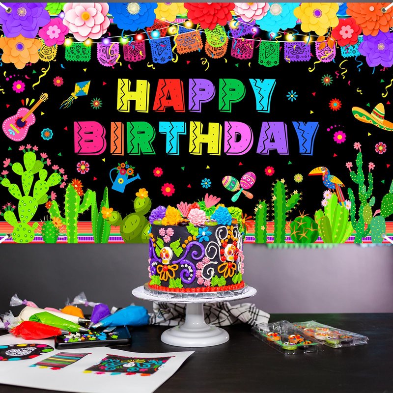 - CELEBRATE IN STYLE: This bright and colorful Mexican birthday party banner creates a festive backdrop for photographs; Made of high-quality polyester fabric that will maintain its vibrant colors even after repeated use, with string for easy hanging