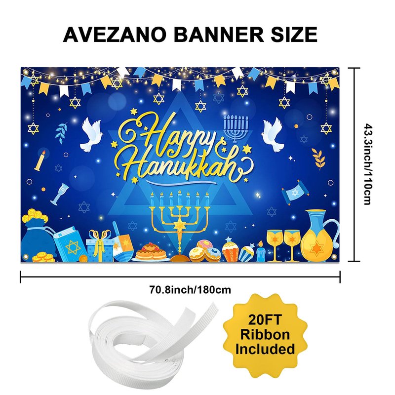 Avezano Happy Hanukkah Banner Backdrop Jewish Chanukah Hanukkah Banner Blue Hanukkah Party Supplies Hanukkah Decorations Indoor Outdoor 70.8x43.3inch