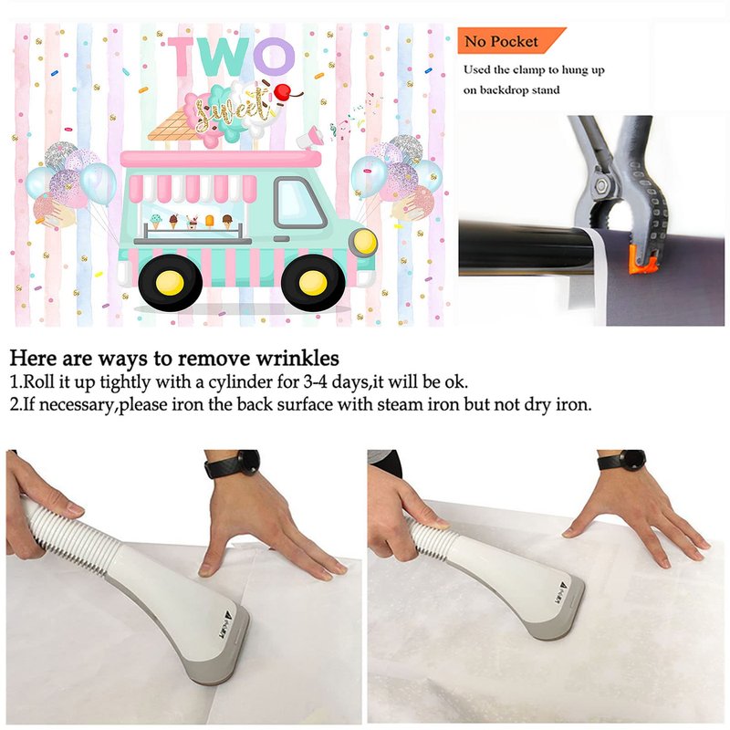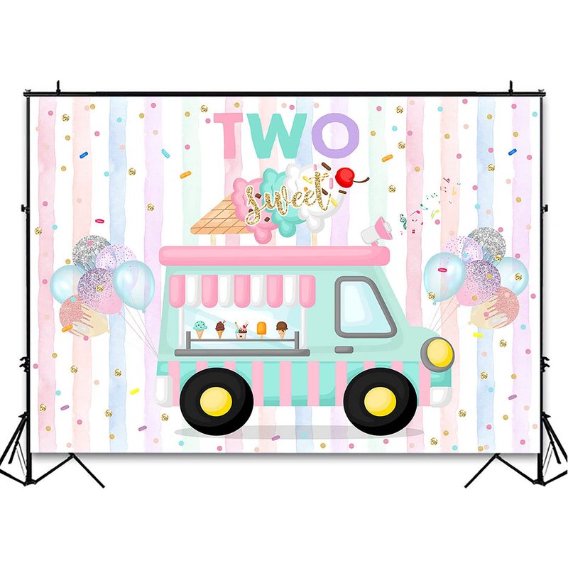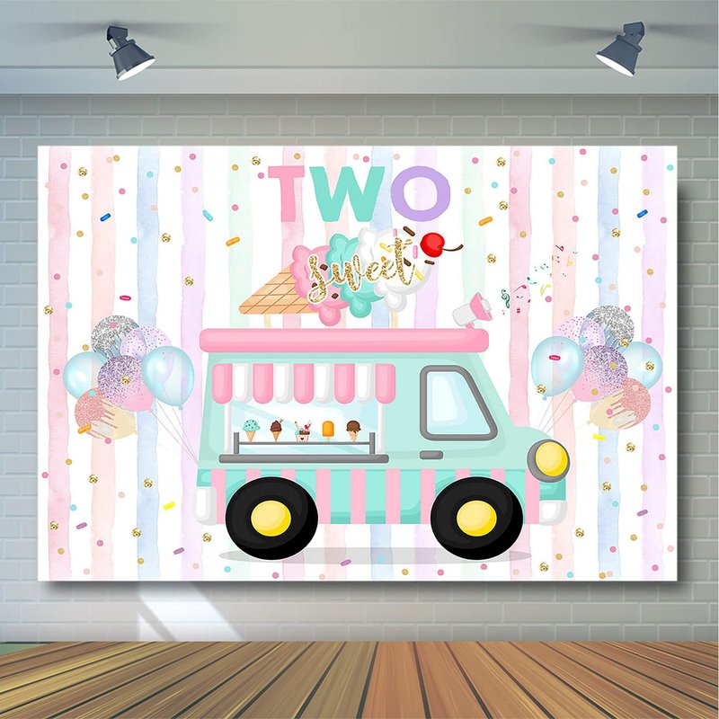 Avezano Ice Cream Birthday Backdrop for Two Sweet Birthday Party Decorations Two Sweet Ice Cream Truck 2nd Birthday Party Banner Cake Table Supplies Photography Background (7x5ft)
