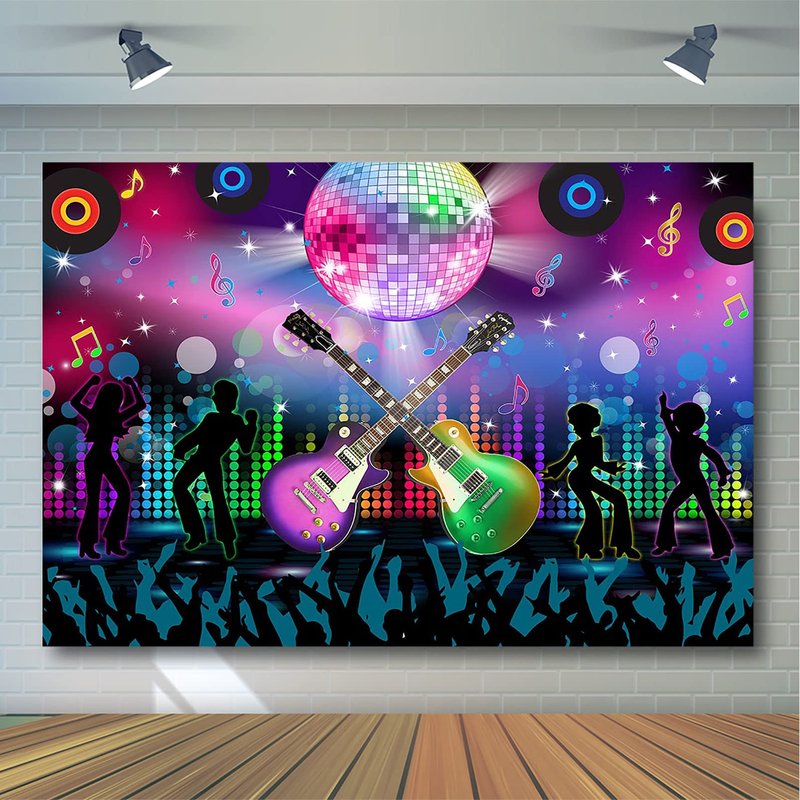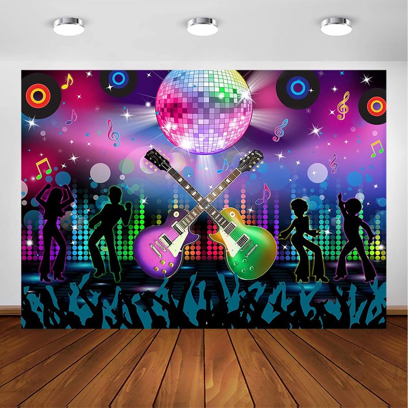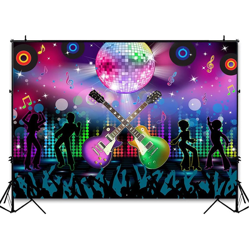 Avezano Karaoke Party Decor Rock and Roll Backdrop Hip Pop Theme Birthday Party Decorations Back to 70s 80s 90s Disco Party Photography Background for Adults Let's Glow Neon Dance Banner (7x5ft)