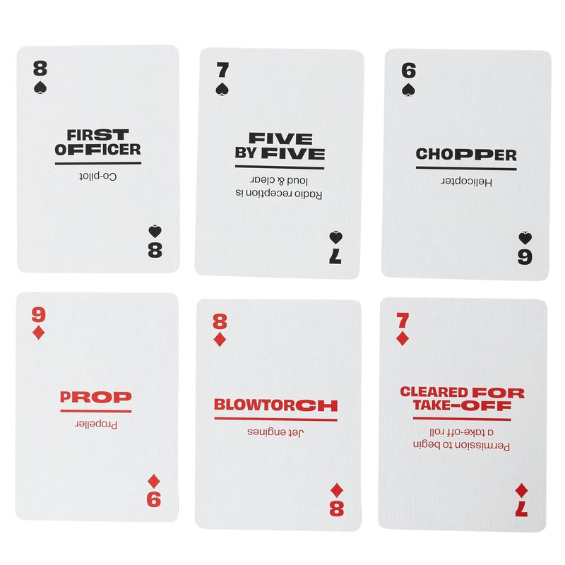 - STANDARD PLAY DECK - Each deck of cards has 54 of the most useful phrases related to aviation, complete with phonetic pronunciations, and features a conventional deck of 52 playing cards and two jokers. These flash cards provide an introduction to common aviation lingo and are ideal for language learners just starting out