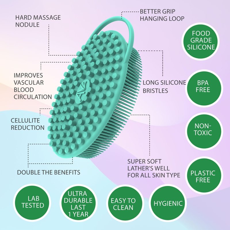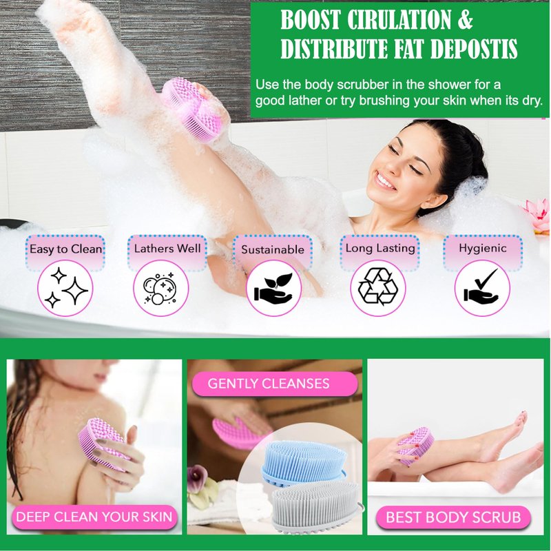 NOW WITH LOOP HANDLE- For better grip and hangs easily in the shower for better drying. A silicone bath brush is more effective than using your hand, a washcloth, or a bristle brush to cleanse your skin. Silicone is a soft and safe material that can help exfoliate your skin. Rubbing the bristles into your skin stimulates blood circulation and can reduce cellulite in problem areas.