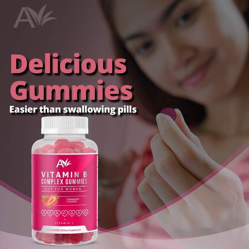 Avilana Vitamin B Complex Just for Women Vegan Gummies with Vitamin B12, B7 (Biotin), B6, B3 (Niacin), B5, B6, B8, B9 (Folate)s, Energy and Healthy Immune System (1 Pack)