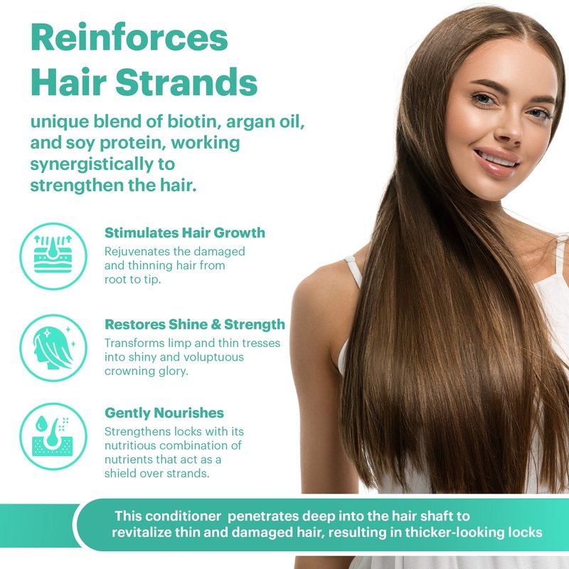 - Reinforced Hair Strands - Our conditioner for hair growth has a unique blend of biotin, argan oil, and soy protein, working synergistically to strengthen the hair. This men and womens conditioner hydrates the scalp and strengthens the hair shaft from root to tip!