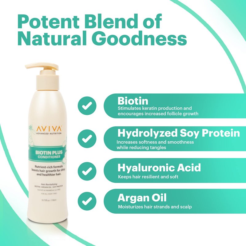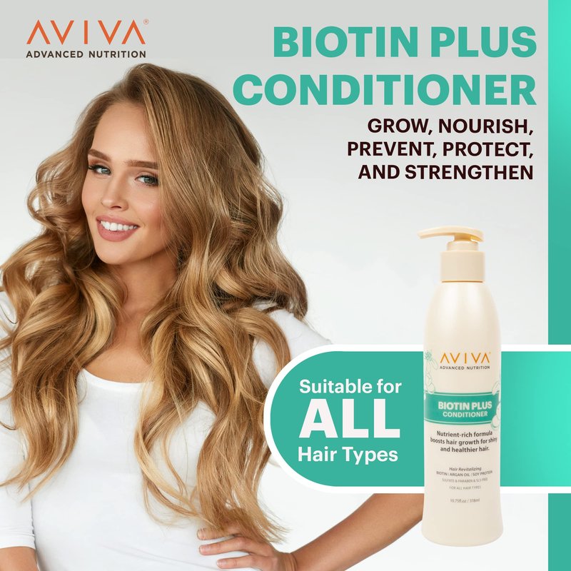 - Stimulates Hair Growth - Re-energize your hair with Aviva’s nutrient-rich biotin conditioner! Our hair conditioner for men and women penetrates deep into the hair shaft to revitalize thin and damaged hair, resulting in thicker-looking locks.