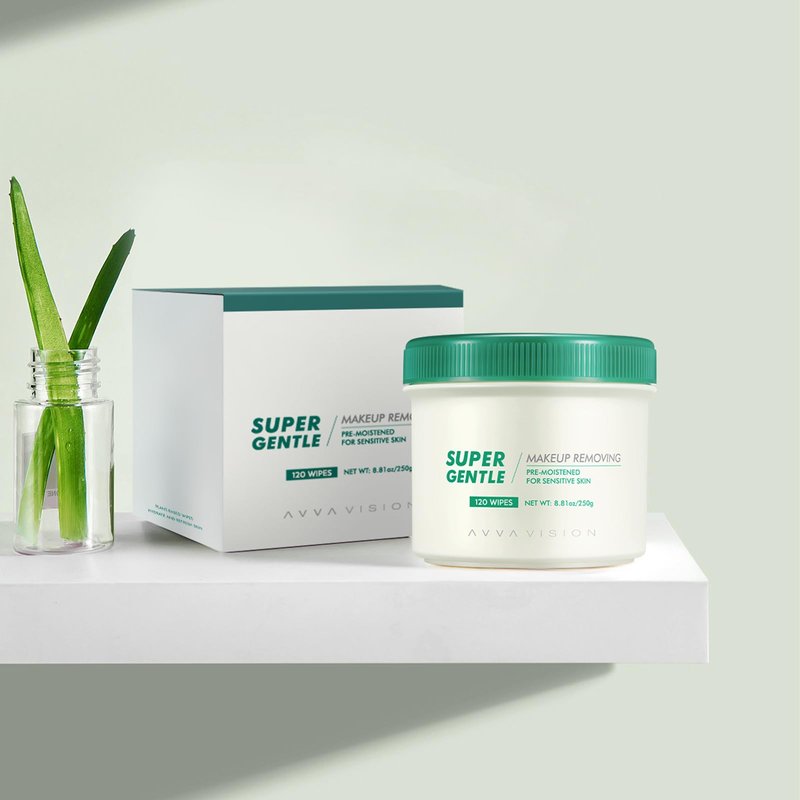 AVVA VISION Super Gentle Makeup Remover Wipes Plant-Based Fibers Sensitive Skin Facial Cleansing Pads Eye Makeup Removal, 120 Wipes