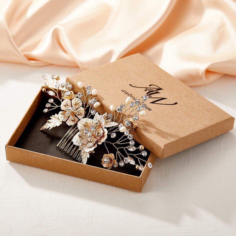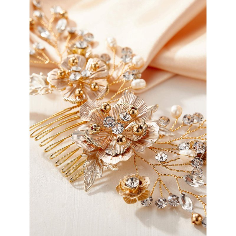 - 🌼This gorgeous one-of-a-kind creation features shimmering rhinestone, alloy, gold floral elements and was created in a classic, elegant sweeping floral design.