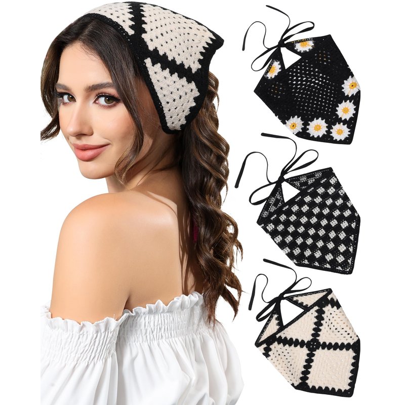 - CROCHET BANDANAS HEADBANDS ARE BEAUTIFUL AND PRACTICAL - The tie-back crochet bandana for girls can be worn on your head to add color to your hairstyle or cover up any condition at the root of your hair on bad days and keep your hair neat. You can also add your favorite trinkets to the knitted headscarf and wear it around your neck.