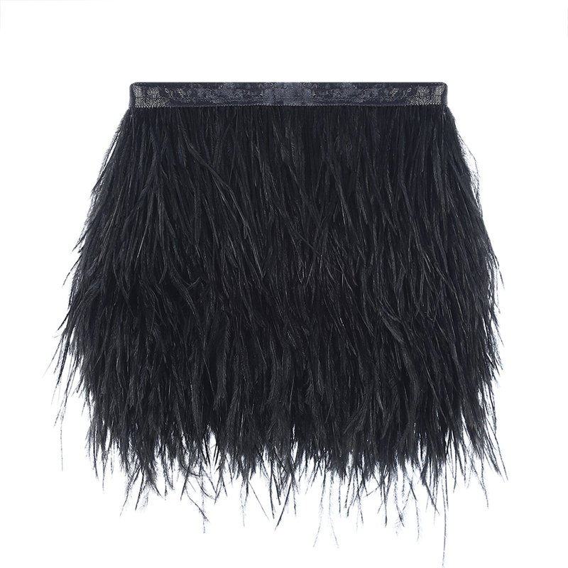 - [Decorative Feather Fringe]: These handmade ostrich feather fringes are sewn onto satin trim to make your crafting and designing tasks easy and hassle-free. Either glue the trim on your vases, cake stands, candles, invites, handicrafts etc. for giving them a fanciful touch, or sew on your dresses, costumes, and masks for that mystic effect.