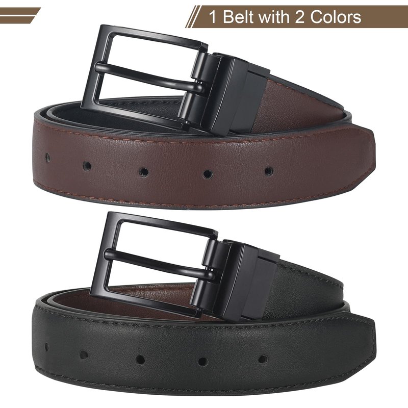 - 2 COLOR IN 1 BELT: The alloy reversible buckle that switches between black and brown at will makes it the perfect boys leather belt for all of your formal wear. This two-in-one belt is also great for school uniforms and jeans, etc