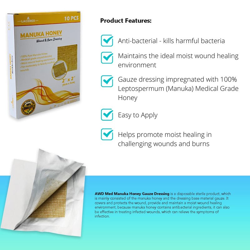 - EASY-TO-USE: Individually wrapped and sterile gauze pads help maintain cleanliness and guard against infection. Gauze-impregnated dressings provide the most comfort when changing or removing them. Our Manuka honey wound care products make it easier for you to take bandages on and off.