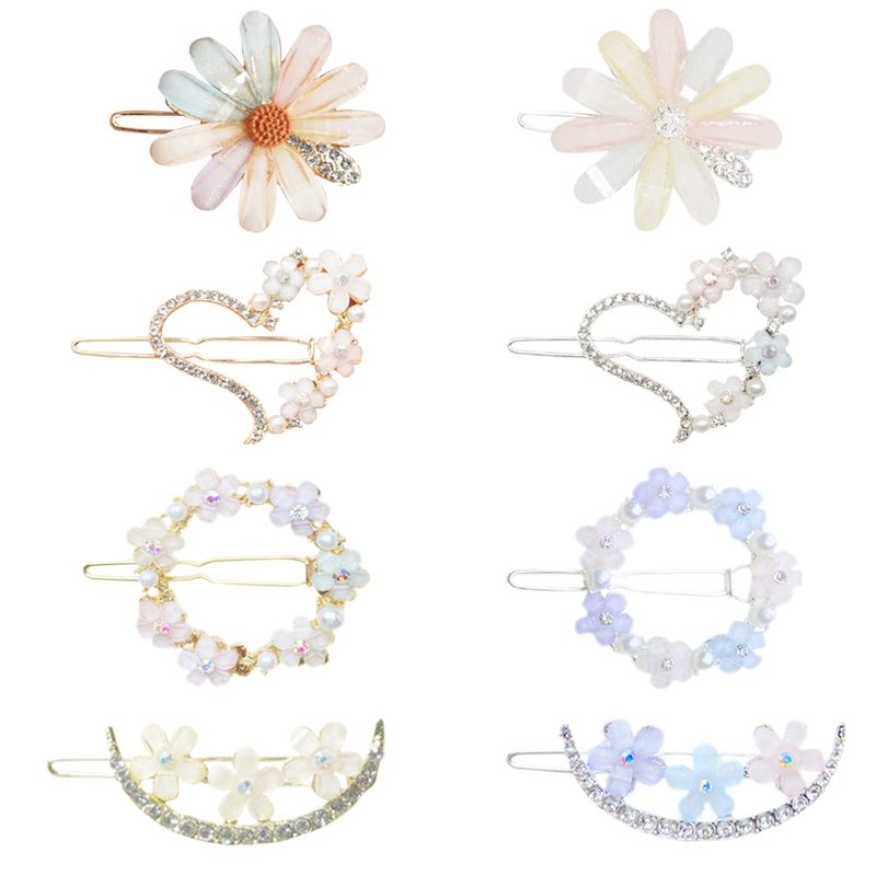 AWEELON 8PCS Decorative Hair Pins Clips for Women and Girls,Glitter Crystal Flower Hairpin, Handmade Metal Barrettes Hair Jewelry Accessories Set