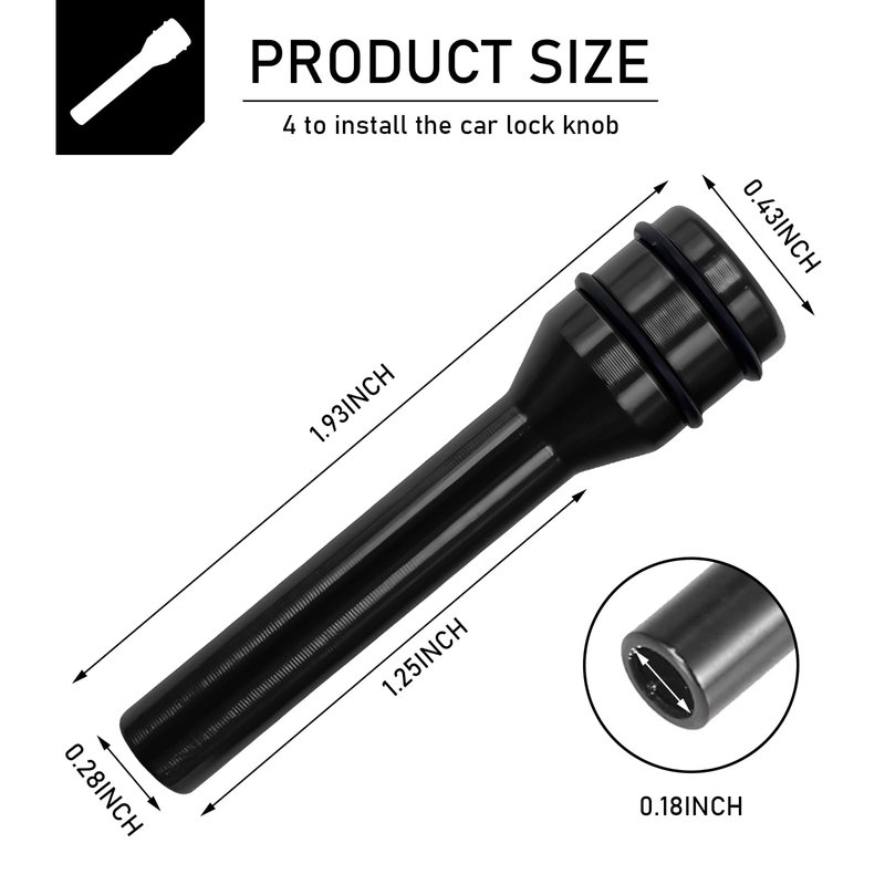 - Packing List: The package includes 4 x car door lock pin cover. The overall size of the product is 0.47" x 1.93", which meets your usage needs. The design is simple, the workmanship and design are top-notch, and it is definitely a must-have for your car. Let your car be at the forefront of your personality.
