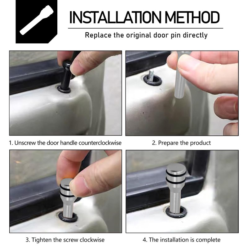- Easy to Install: Detach the original car door latch, insert it directly into the original car door lock pin position, internal thread, rotate and tighten, and replace it without damage. No tools required, saving time and effort.