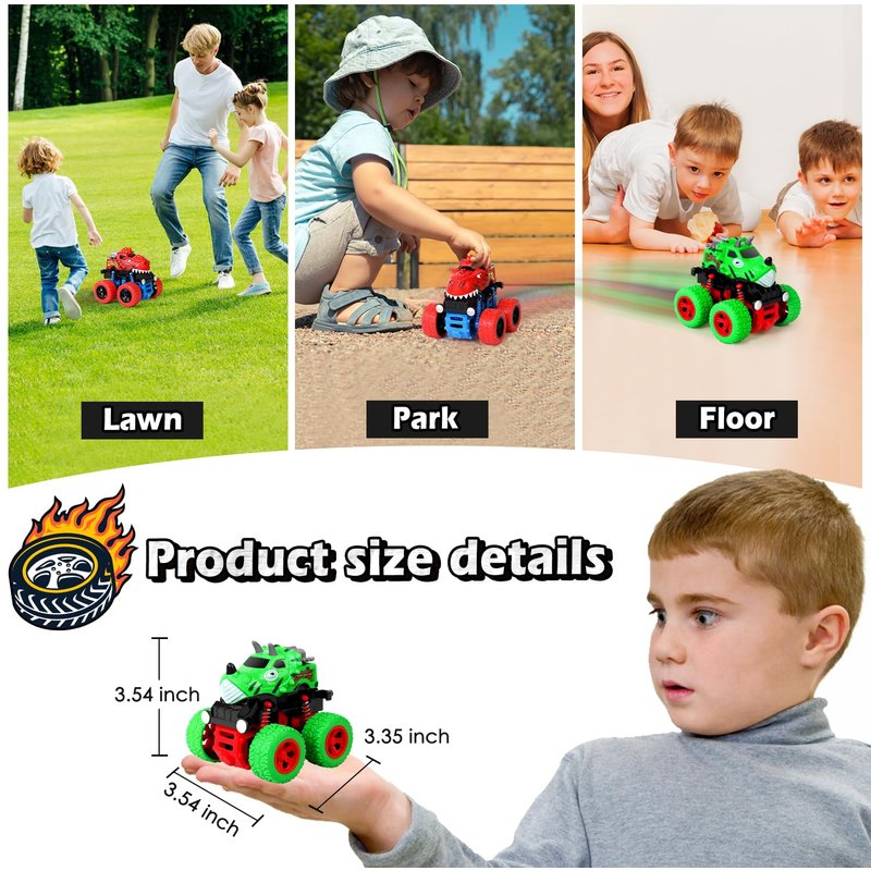 - Fun & Safe - Our dinosaur monster trucks are child-safe and have a perfect size for boys age 3+ gift that will provide your little one with hours of imaginative play and fun!