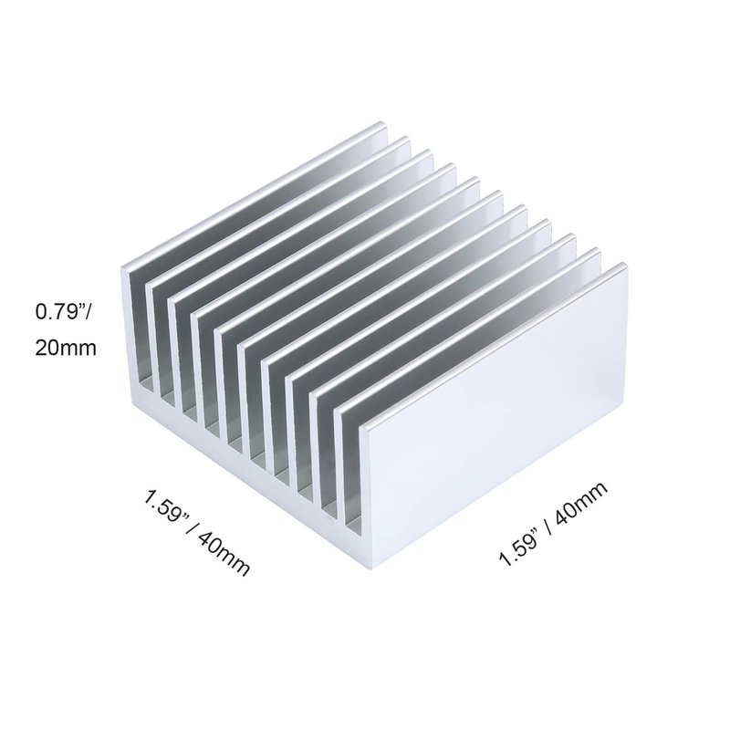 1. 40mm (L) x 40mm (W) x 20mm (H) extruded aluminum heat sink kit is made from 6063-T5 aluminum alloy with high thermal conductivity, structure stability and light weight.