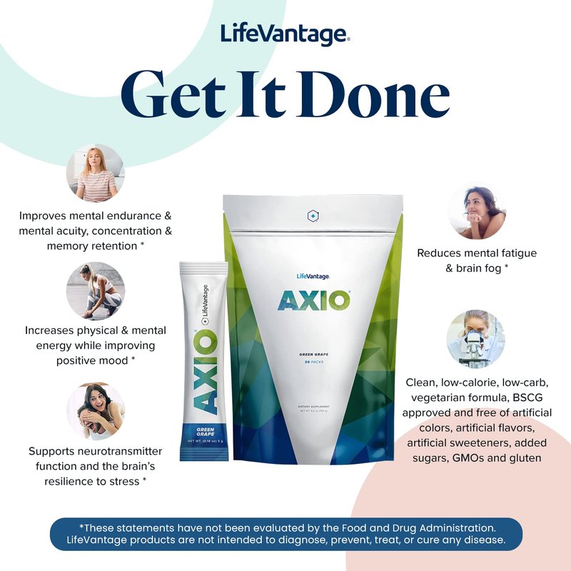 - Begin taking AXIO powder drink mix and support your overall cognitive health. This energy supplement improves mental endurance, concentration, and memory retention. For a healthier mind!
