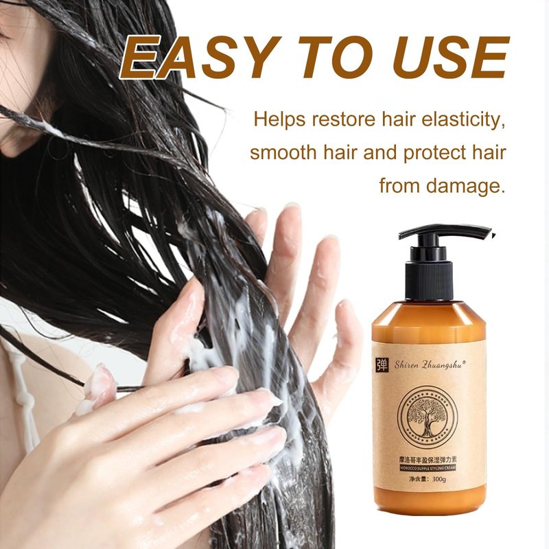 - Moroccan curling elastic hair conditioner revitalizes and strengthens your hair strands, long-lasting styling moisturizing elasticity serum.