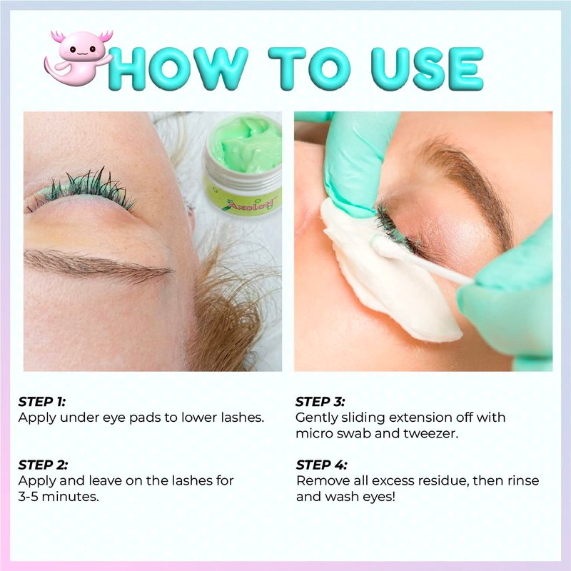 - 【Quick Remover】 If you're looking for a QUICK remover, this Axolotl Cream Remover is your solution! This cream remover is not only the easiest route for extension removal, but it's also the fastest. With Axolotl Cream Remover, you can remove those eyelash extensions in a few minutes with only a small amount!