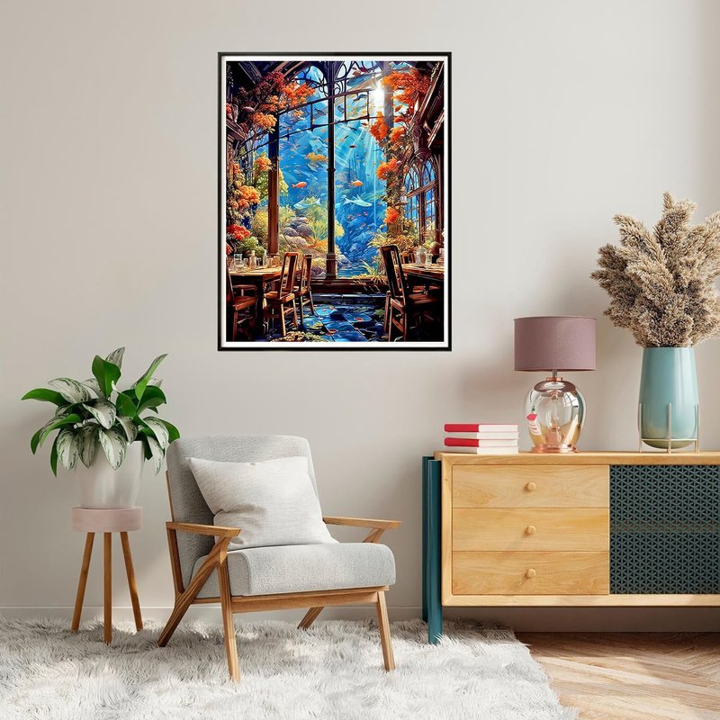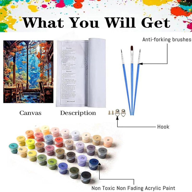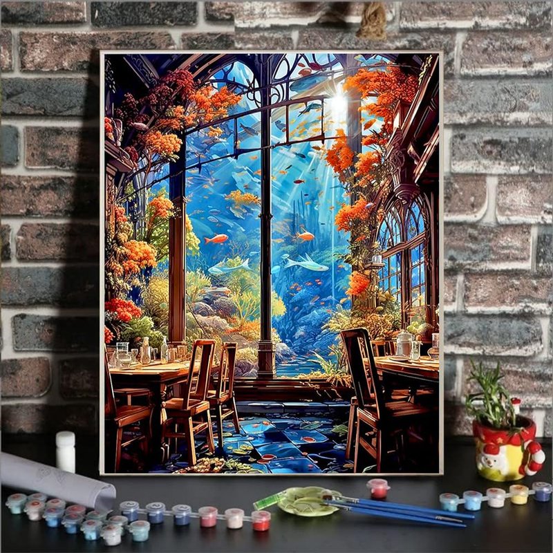 Axquilon Paint by Numbers Kit for Adults Beginner-Aquarium Adult Paint by Number Kits on Canvas, Easy Adults' Paint-by-Number Kits Oil Painting Craft Supplies for Gift Home Wall Decor 16 x 20in