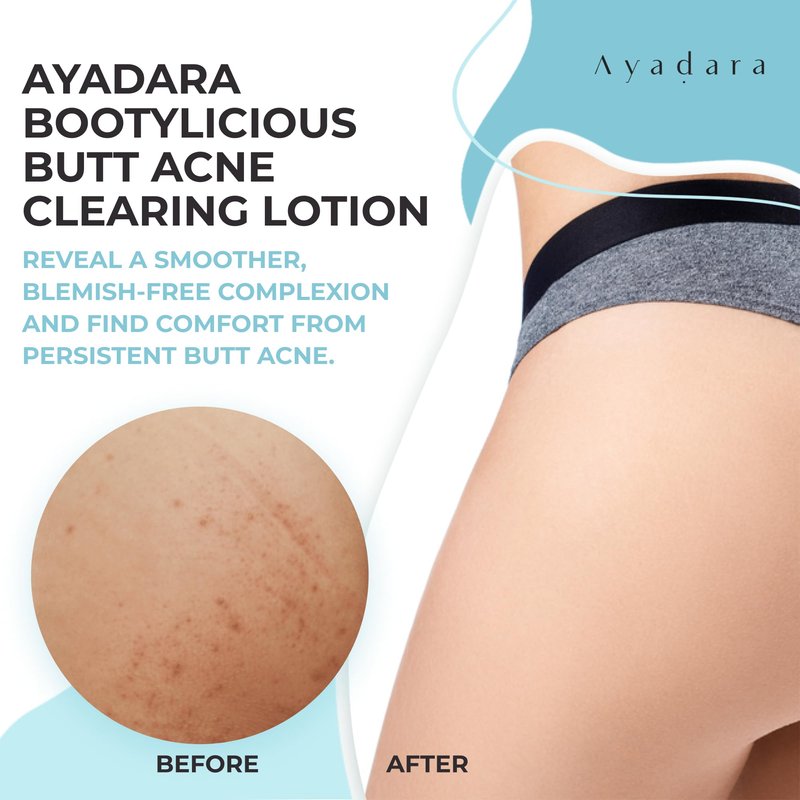 - Targeted Butt Acne Treatment: Ayadara's acne on buttocks treatment is made specifically for butt acne. With gentle ingredients like aloe vera, cucumber extract and eucalyptus, this butt acne lotion clears pimples without dryness or irritation.
