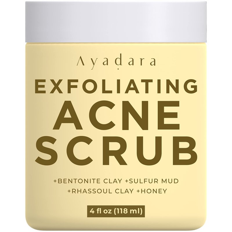 Ayadara Exfoliating Acne Scrub, 4 fl oz(118 ml), Exfoliating Acne Face Wash, Natural Facial Scrub for Severe and Hormonal Acne, Facial Acne Scrub for Teens, Women, Men, and Adults, 120-Day Supply