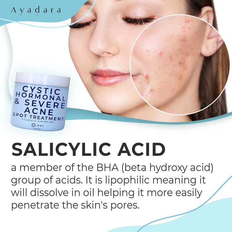 Ayadara Warrior One (0.5oz) Acne Spot Treatment with 2% Salicylic Acid, Cystic and Hormonal Acne Cream, Acido Salicilico Acne Spot Treatment for Face, acne Cream for Adults and Teens, 150+ Uses