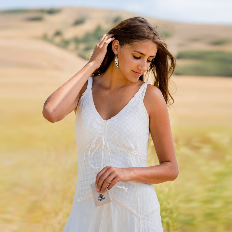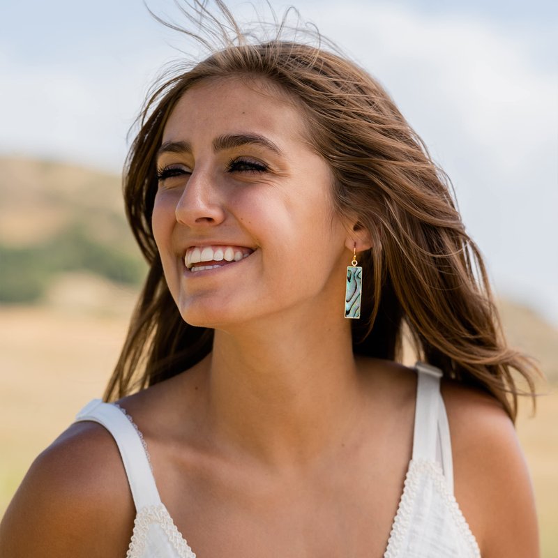 AYANA Healing Crystal Earrings for Women - Handmade Drop Earrings with Ethically Sourced Authentic Gemstones | Birthstone Jewelry for Women Trendy (Abalone)