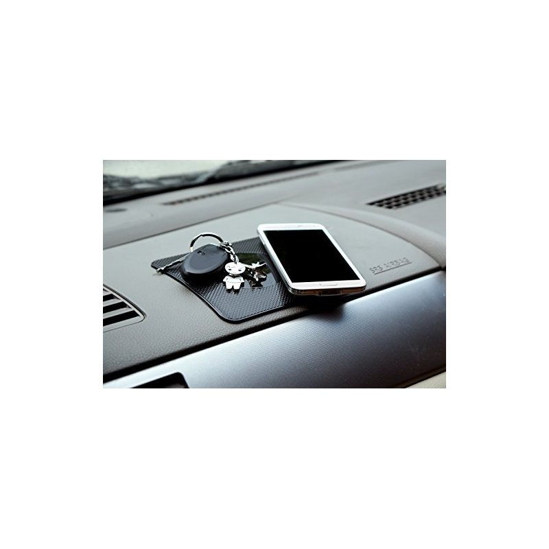 - MULTI-USE ELECTRONICS MAT AND DASH PAD: Sticky pads for car dashboard, boats, golf carts, office and kitchen- keep coins, GPS, cell phone, radar detector or transponder/iPass on non slip pad car dashboard mat. Rubber non slip pads and sticky mats can be used in the center console windshield. The rubber grip pad will stop iPads from sliding. The non slip dashboard pad can be used while surface charging your phone. Press and hold for 10 seconds and the phone sticky pad works!