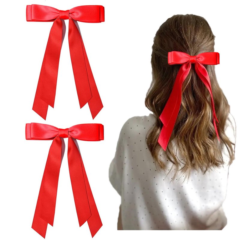 - HAIR CLIP FOR WOMEN GIRLS : Hair clip characteristic is cute bow and long tail, Add some extra style to your hair without spending a lot of time with our hair ribbon clips. Whether you’re sporting a ponytail, braid, pigtails or updo, these Hair Bows for women and girls are a perfect choice.
