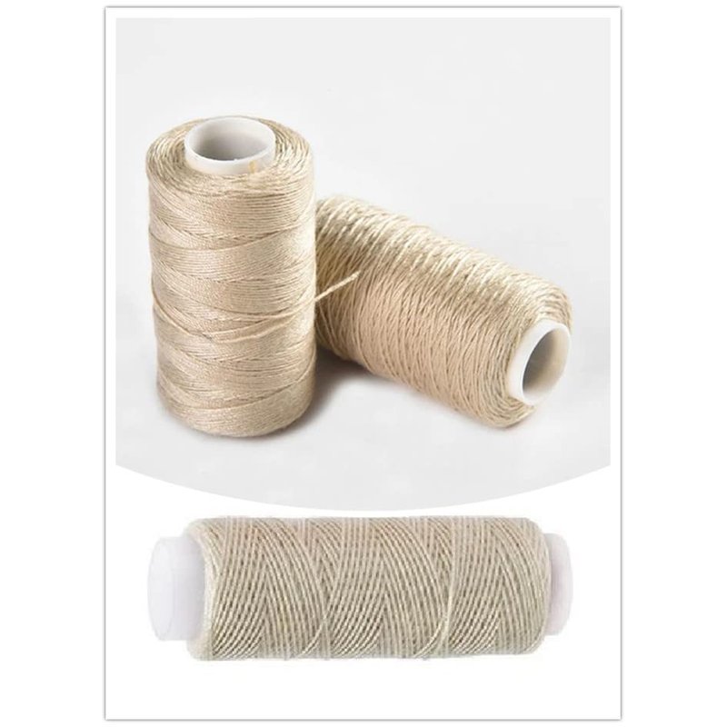 Ayina 3 Rolls Cotton Sewing Thread Hair Weaving Making Wig Extension Salon Weft Black Brown Beige with Curved Needles (Beige /3Pcs)