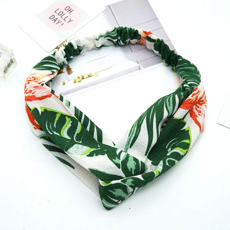 3 x Green Style Banana Leaves Printed Cross Knot Headbands