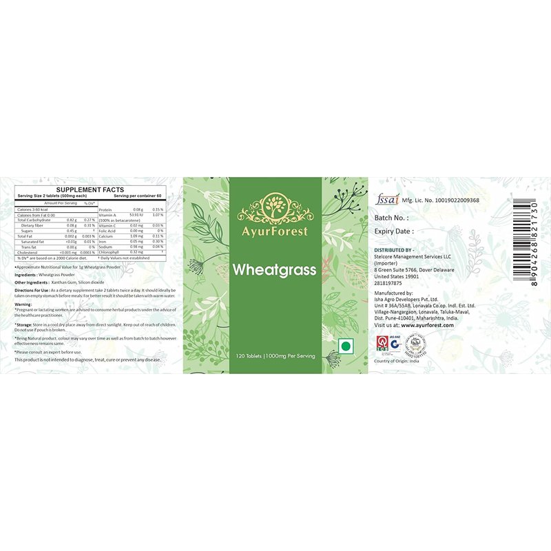 - AyurForest Wheatgrass Supplement, 120 Tablets 500 mg Each