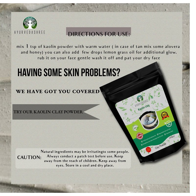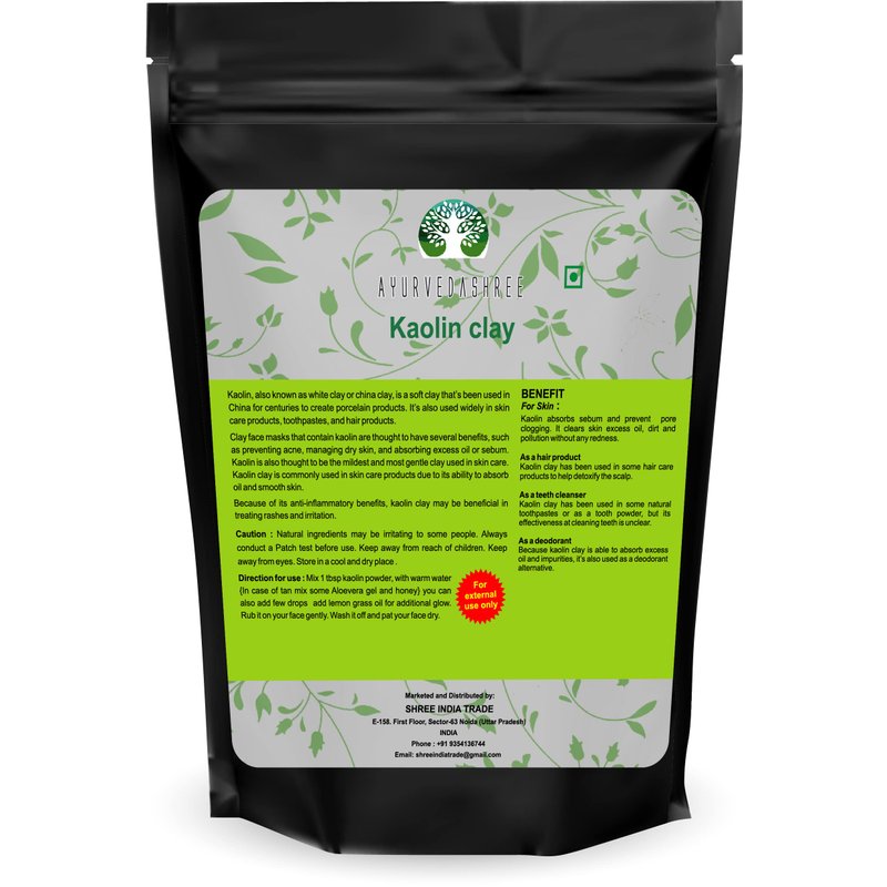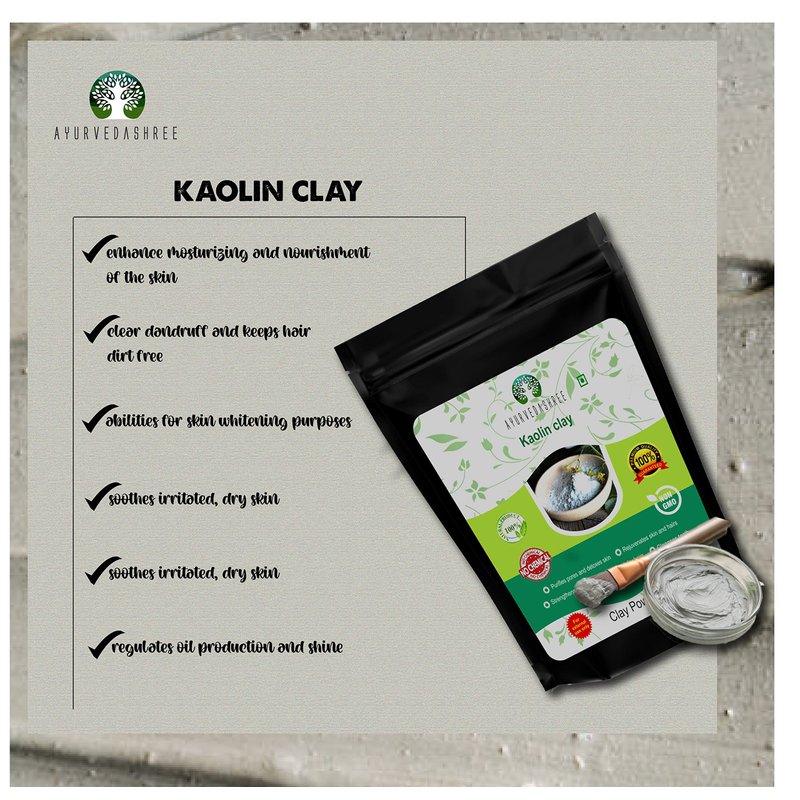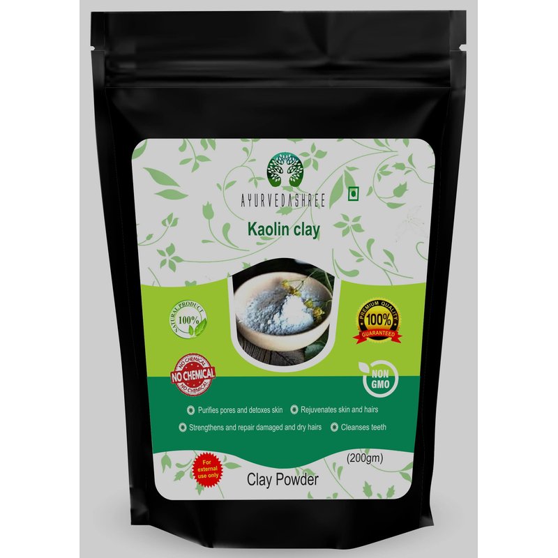 AYURVEDASHREE Kaolin Clay Powder 200 Gm. Kaolin Clay is one of the most gentle among all Clays used in Skin Care. Kaolin clay stimulates your skin cells. When used regularly, it brightens and tones your skin. However, you will not see immediate effects. You need to to use it for a long time before you see any results. Kaolin Clay is most suitable for people with Sensitive Skin.
