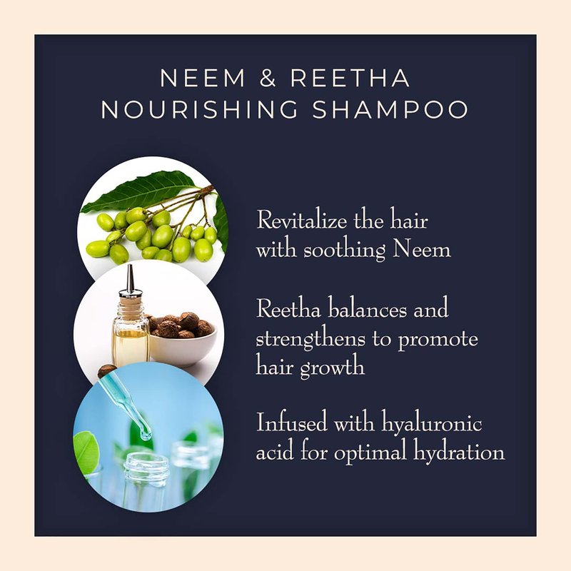 - REVITALIZING REETHA. Rich in Saponins, delicate natural surfactants that revitalize hair and cleanse without irritation, Reetha is a supportive ingredient that works wonderfully with Neem to reduce excess oil and prevent dandruff and scaliness.