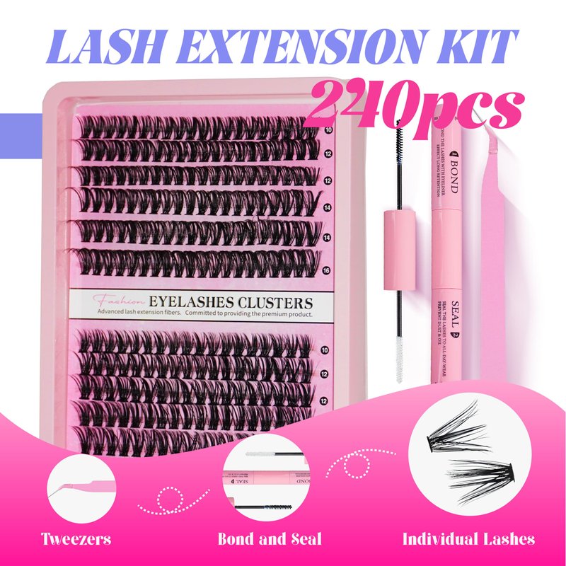 - our first choice of cluster lashes kit includes: one tray 40D+60D lash clusters, 1 lash bond and seal glue (2 in 1), 1 lash applicator tweezer. Our DIY lashes kit includes all the necessary tools. Beginner Friendly. Save your time and money.
