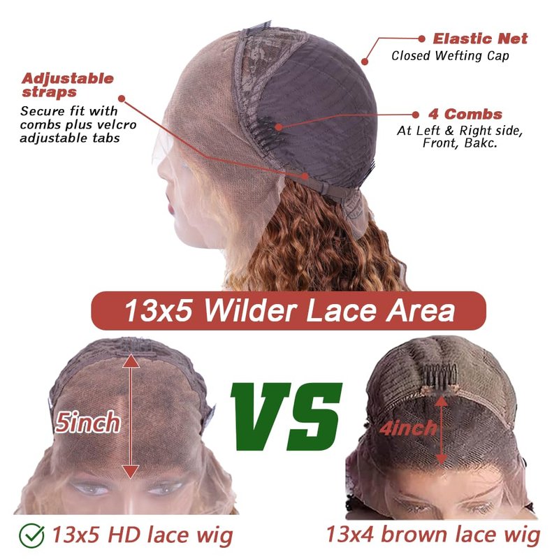 - 🎄Blonde Highlight Wigs Human hair Comfortable Wig Cap:13x5 HD Lace Front Wigs Cap(22-22.5 inch)With 4 Combs and Adjustable Straps Make It Fit Most People,Strong and snug, the wig elastic can change the tightness depending on your head circumference.