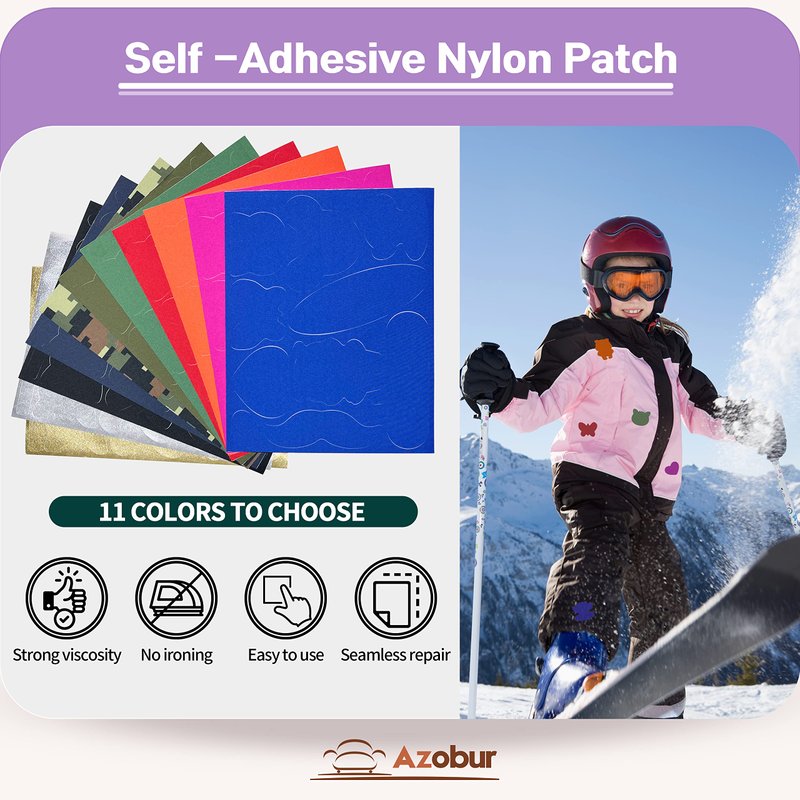 Azobur self-adhesive nylon repair patchs quickly repair your clothes, Super sticky composite glue on the back can be used for almost any nylon, polyester, GORE-TEX fabric, etc. No peeling. Three different sizes and different colors,whether you want to DIY or easily and conveniently, our patches have suitable sizes and patterns to meet your needs.