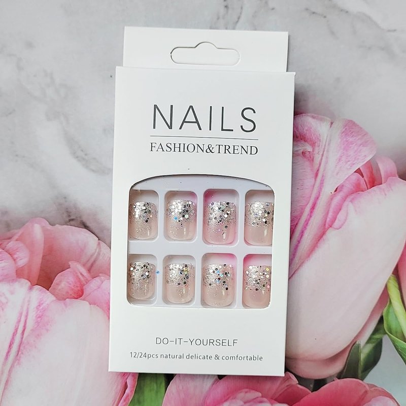 - 【Press on Finger Nails Easy to Use】Instead of spend lots time and money at nail salon, you can change you nails style in 15 min anytime and anywhere.(The glitter powder fake nails will stay longer if you clean your nails before use, and avoid water within the first hour of wearing)