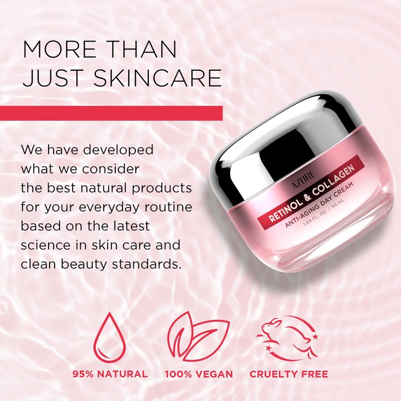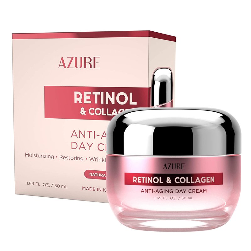 AZURE Retinol & Collagen Day Cream - Anti Aging, Restoring & Hydrating Moisturizer - Reduces Fine Lines, Evens Tone - 50mL / 1.69 fl.oz.