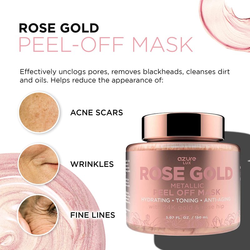 AZURE Rose Gold Metallic Sparkling Peel Off Moisturizing Face Mask - Reduces Wrinkles, Fine Lines & Acne Scars | Removes Blackheads & Dirt and Oil | Repairs Uneven Skin Tone - 150mL / 5.07 fl.oz.