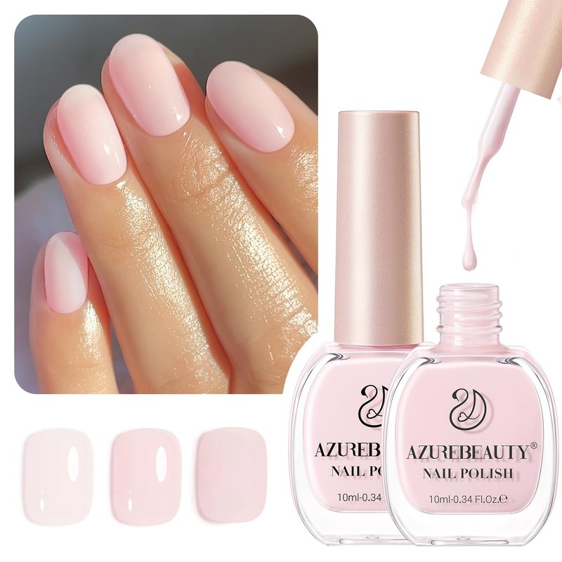AZUREBEAUTY Pink Nail Polish Set, Vegan Light/Pale Pink Nail Polish Quick Dry Natural Infinite Shine Nail Lacquer Fingernail Polish Strengthening Treatment Kit Salon-Quality for Women 2Pcs 0.34 oz