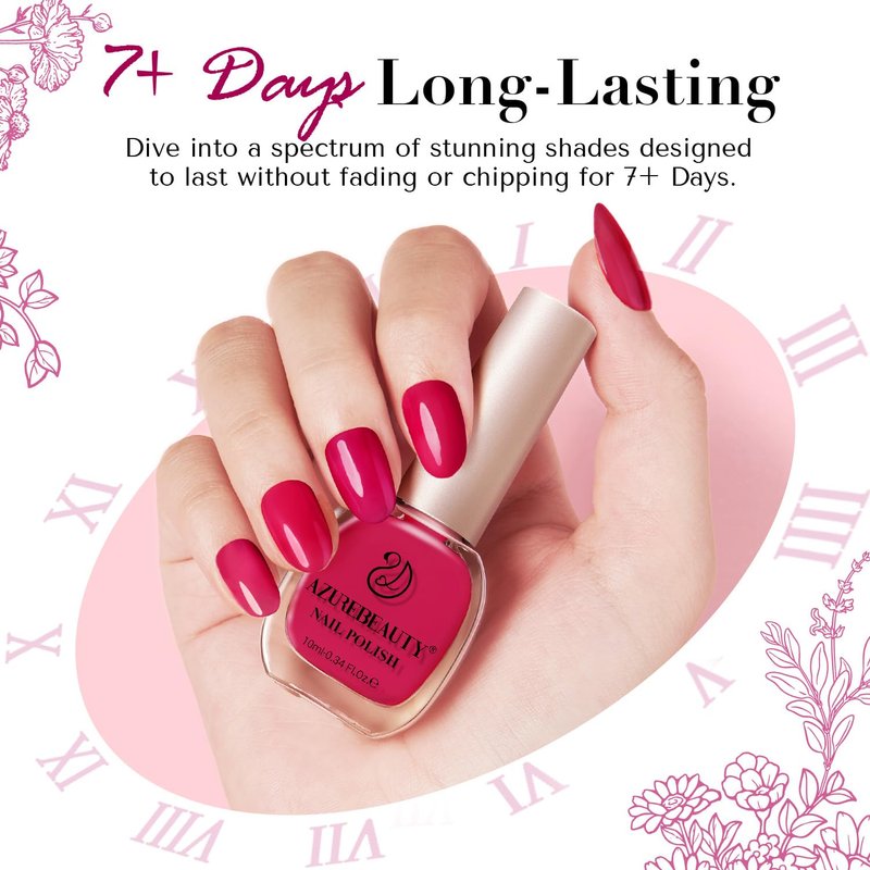 - 【Limited-edition Sharing Set】AZUREBEAUTY nail polish set contains 2 classic bright raspberry red nail polish,you can enjoy nail art with your sister,family, friends.This set is packaged in a beautiful gift box,making it the perfect choice for gift giving.Moreover,the 2-bottle set structure avoids glue drying caused by long periods of non-use after opening the bottle.With enough for an entire holiday trip,this limited edition sharing set gives you a unique nail art experience.